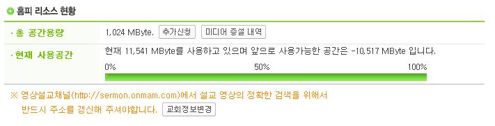 영상설교를 1년 단위로 올리게 되면 52주 7800Mbyte가 필요합니다.